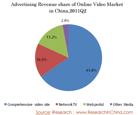 Advertising Revenue share of Online Video Market in China,2011Q2