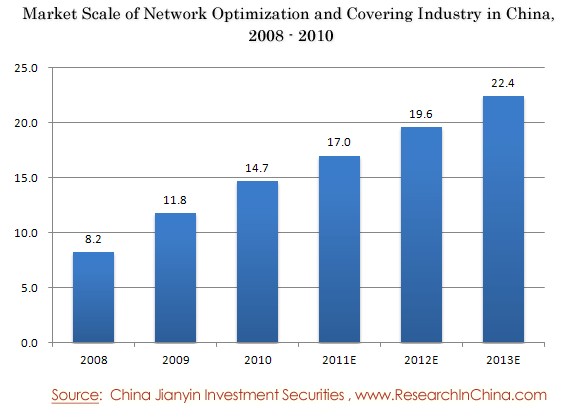 Market Scale of Network Optimization and Covering Industry in China, 2008 - 2010(Unit:1,000,000,000 Rmb)