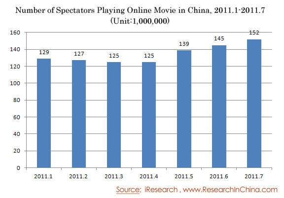 Number of Spectators Playing Online Movie in China, 2011.1-2011.7 (Unit:1,000,000)