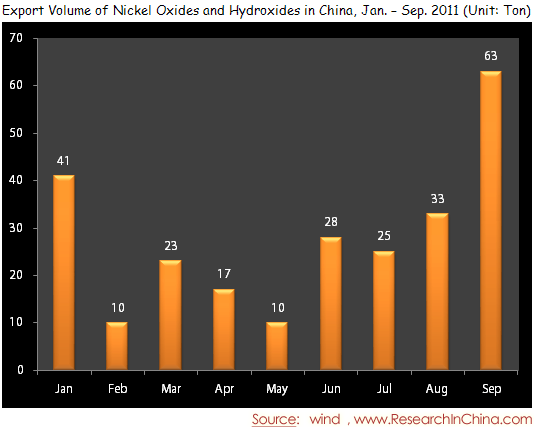 Export Volume of Nickel Oxides and Hydroxides in China, Jan. – Sep. 2011