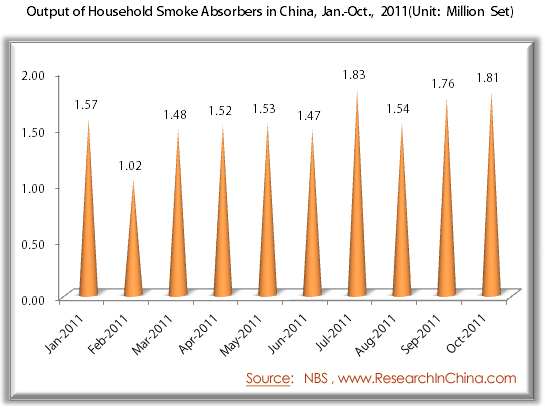 Output of Household Smoke Absorbers in China, Jan.-Oct., 2011