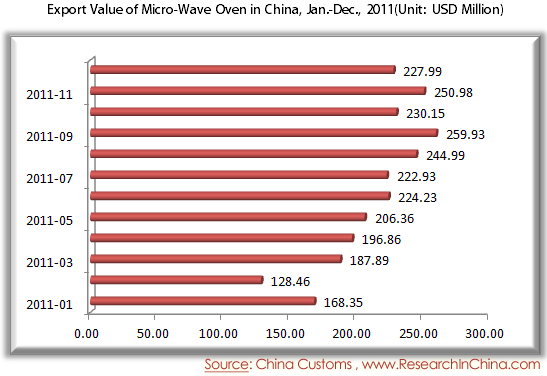 Export Value of Micro-Wave Oven in China, Jan.-Dec., 2011