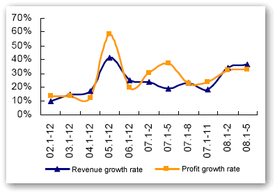 Revenue, Profit Growth Rate of Wine Industry, 2002-2008