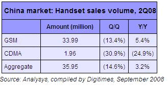 Handset Sales Volume in China Market, 2008Q2
