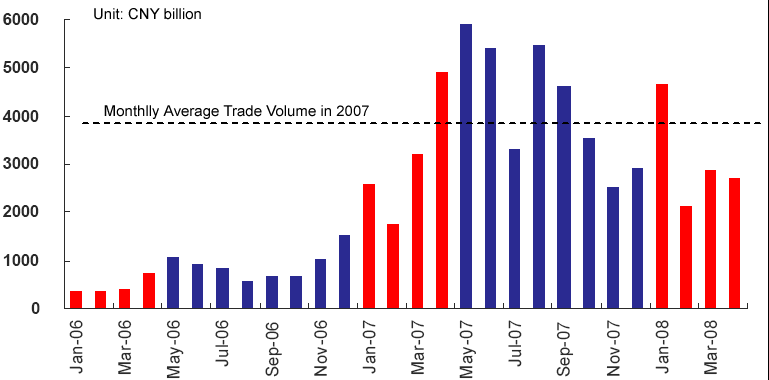 Monthly Average Trade Volume of Stocks, 2006-Apr. 2008