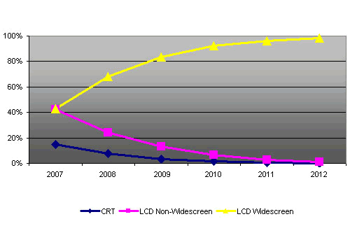 China's Shipment of PC Monitors (CRT, LCD Non-Widescreen and LCD Widescreen)