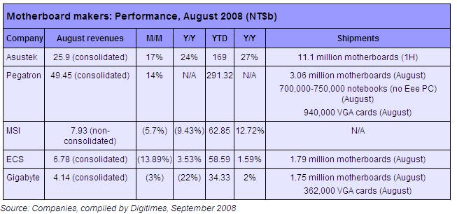 Performance of Motherboard Makers, Aug. 2008 (NT$b)