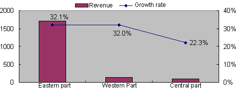 China Software Industry Revenue by Region, Jan-Apr 2008