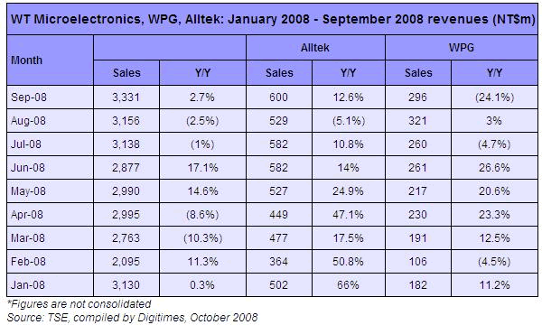 Revenues of WT Microelectronics, WPG, AlltekSitronix, Jan-Sep 2008