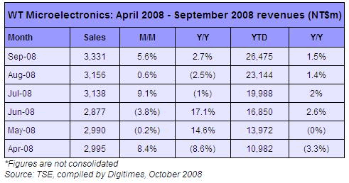 Revenue of WT Microelectronics, Apr-Sep 2008