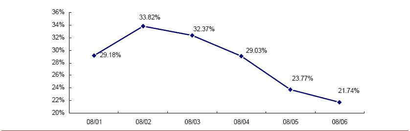 Y-O-Y Growth of Total Industrial Output Value of Metal Cutting Machine Tool in China in 2008
