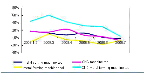 Y-o-Y Growth of Machine Tool Output, Jan.-Jul.2008