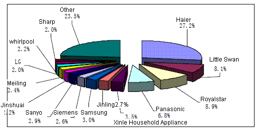 Distribution of Domestic Market Share of China Washing Machine, H1 2008