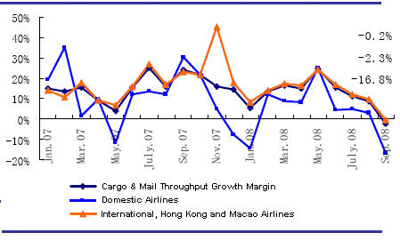 Pudong Airport Cargo & Mail Throughput Change, 2007-2008