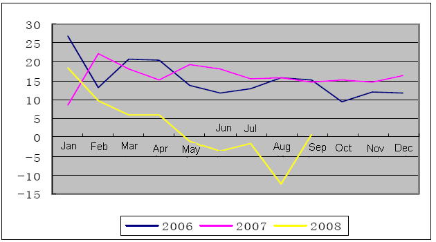 Monthly Growth Rate of Passenger Traffic Volume, 2006-2008