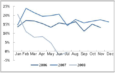 Monthly Growth Rate Changes of Total Transport Turnover Volume, 2006-2008