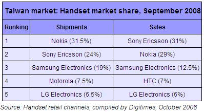 Taiwan Handset Market Share, Sep 2008