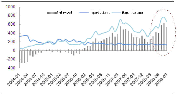 Monthly Statistics of China Steel Import & Export, 2004-Sep 2008