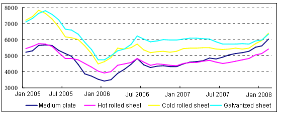 SteelPrice Changes Trend, 2005-Jan2008