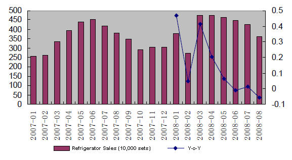 Refrigerator Monthly Sales, 2007-Aug, 2008