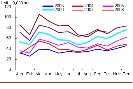 Monthly Sales Trend of China Auto Industry, 2003-2008