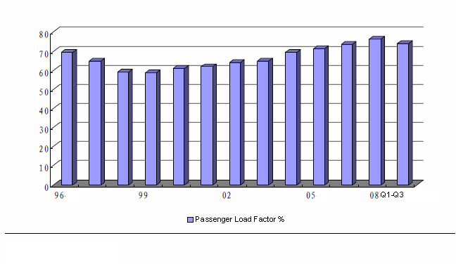 Average Passenger Load Factor of China Airline Companies, 1996-2008