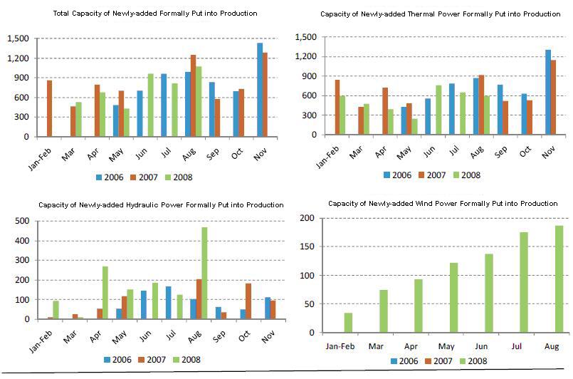 China's Monthly Power Station Installed Capacity Change, 2006-2008
