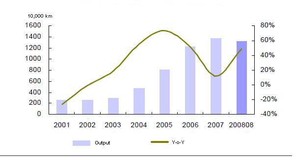 Power Cable Output and Growth Margin, 2001-Aug, 2008