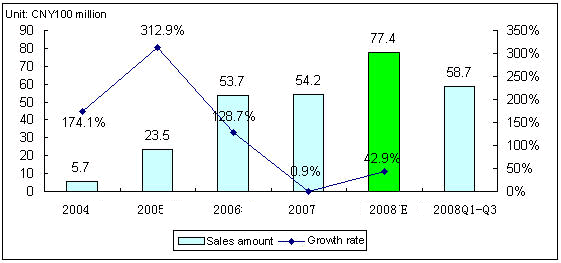 Market Sales Amount & Estimate of China Digital TV STB, 2004-2008