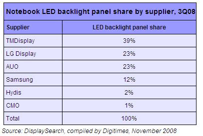 Notebook Backlight Panel Share by Supplier, 2008Q3