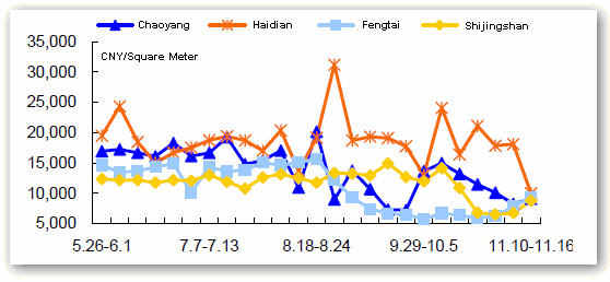 Average House Sold Price Change of Beijing Suburban Areas by District, May-Nov, 2008