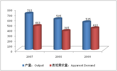 Silicon Carbide Output and Demand of China, 2007-2009