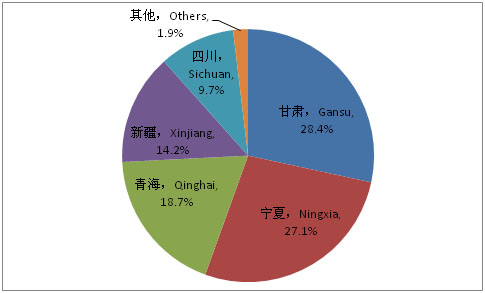 Distribution of Silicon Carbide Output by Region, China, 2009