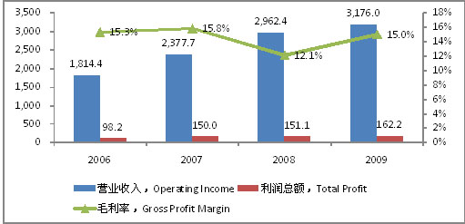 Operating Income, Total Profit and Gross Profit of Chemical Raw Materials and Chemical Products Manufacturing Industry, 2006-2009 (RMB in Billions)