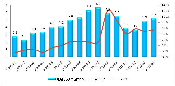 Monthly Export Volume of TV Sets in China, Jan. 2009-Apr. 2010