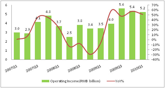 Quarterly Operating Income of Hisense Electric, Q1 2007-Q1 2010