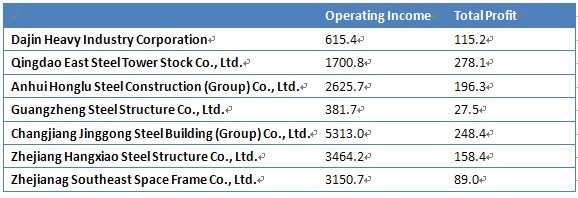 Operating Income & Total Profit of Steel Structure Industry by Corporation, 2010