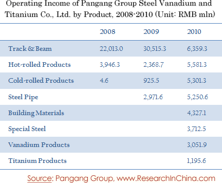 Operating Income of Pangang Group Steel Vanadium and Titanium Co., Ltd. by Product, 2008-2010