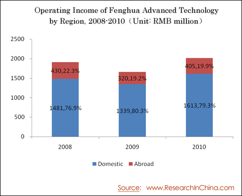 Operating Income of Fenghua Advanced Technology by Product, 2008-2010