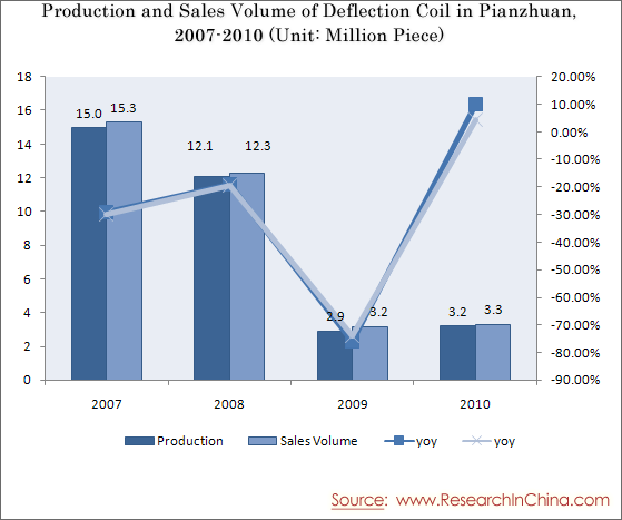 Production and Sales Volume of Deflection Coil in Pianzhuan, 2007-2010