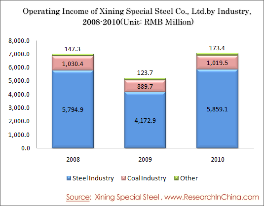Operating Income of Xining Special Steel Co., Ltd. by Industry, 2008-2010