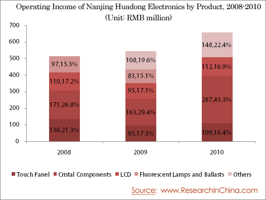 Operating Income of Nanjing Huadong Electronics Information & Technology. Co.,Ltd by Product,2008-2010