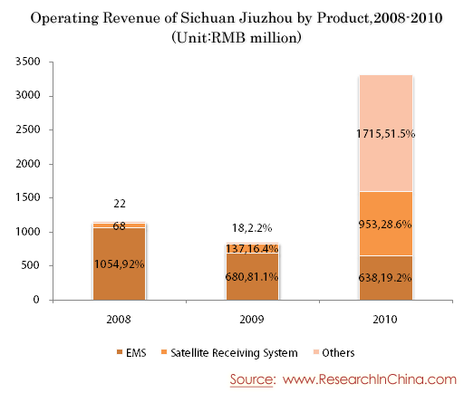 Operating Revenue of Sichuan Jiuzhou by Product,2008-2010