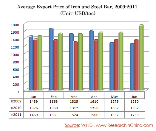 Average Export Price of Iron and Steel Bar, 2009-2011