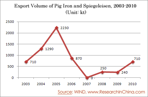 Export Volume of Pig Iron and Spiegeleisen, 2003-2010