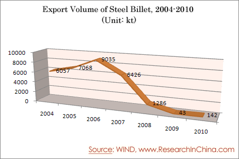 Export Volume of Steel Billet, 2004-2010