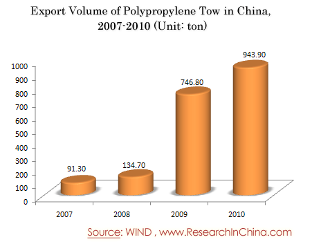 Export Volume of Polypropylene Tow in China, 2007-2010