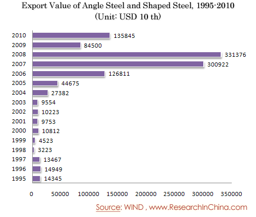 Export Value of Angle Steel and Shaped Steel, 1995-2010
