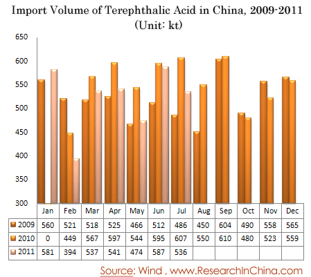 Import Volume of Terephthalic Acid in China, 2009-2011