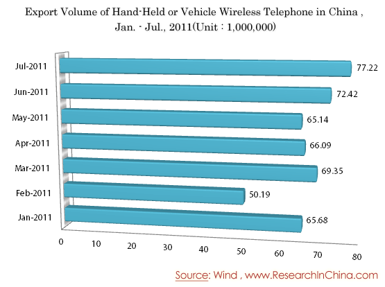 Export Volume of Hand-Held or Vehicle Wireless Telephone in China , Jan. - Jul., 2011